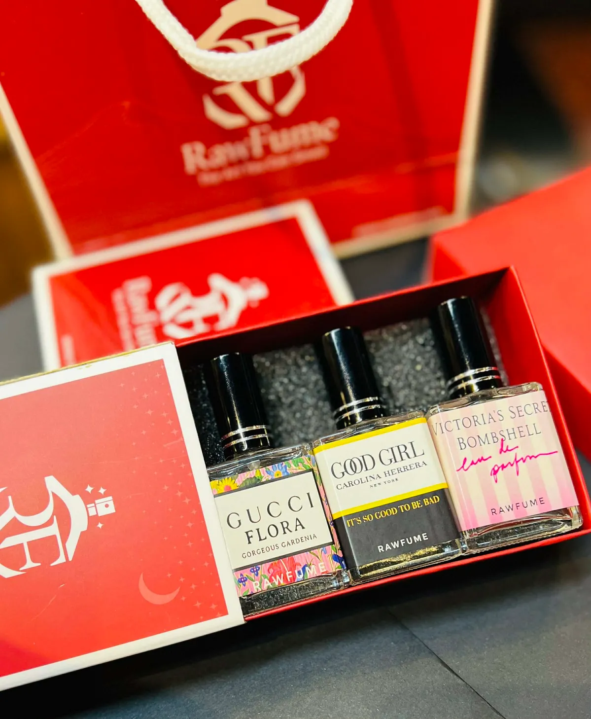 This 3 in 1 – Perfume for Women Gucci Flora – Gorgeous Gardenia, Carolina Herrera – Good Girl and Victoria’s Secret – Bombshell is available to purchase from RawFume Perfume Shop one of the renowned perfume stores in Dhaka. RawFume has introduced authentic branded perfumes in mini sizes for consumers to be able to easily grab them as gift set, travel pack, personal use etc.